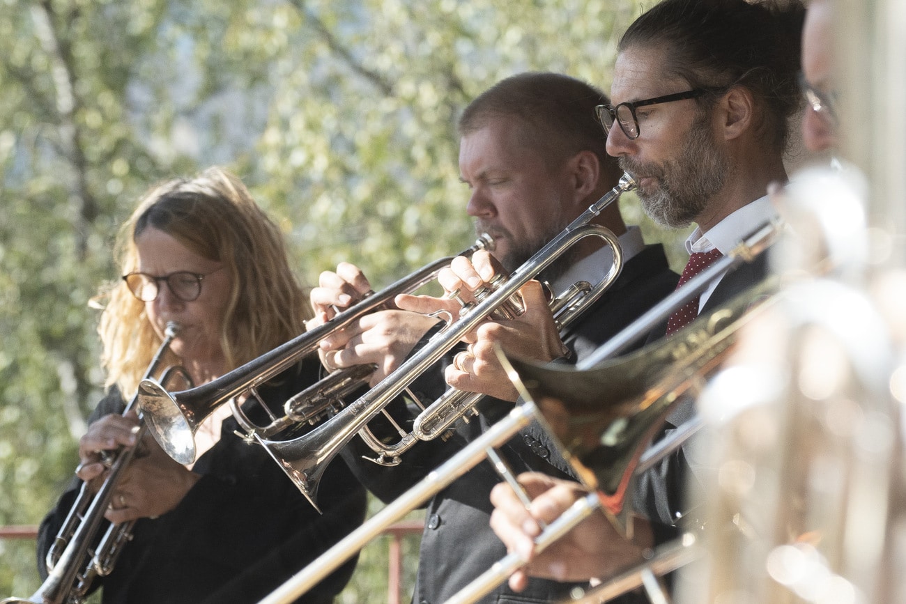 Norrlandsoperans Symfoniorkesters brassektion levererar sånger från femte våningen. Kom och lyssna när ljuv mässingsmusik fyller rymden över Operaplan.