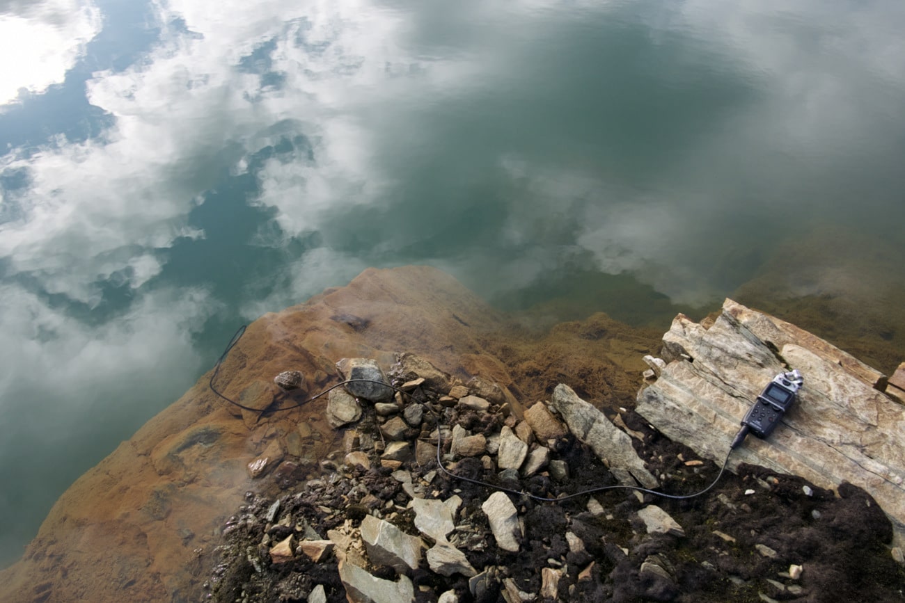 Gruvsjön, Berganden och Horisonten (“The mine pit lake, the mountain spirit and the horizon”) takes off from the story and fate of a mine pit lake in the region of Stekenjokk in the mountains of Västerbotten and Jämtland. After being used for 20 years to mine copper, the mine pit was ultimately declared unprofitable and abandoned in 1988. As the site was contaminated with heavy metals and sulphur – waste products deemed impossible to discard safely – its hollows and cavities were packed with sand from the beneficiation process, while the cooling lake placed on top stayed filled with fresh water. It is left to be as it is, unprofitable and untouchable, for all foreseeable time. However, there are recent discussions and processes about reopening the mine. Various companies have been test drilling for additional minerals, in the constant prospecting for more all in line with the new “green” transition.