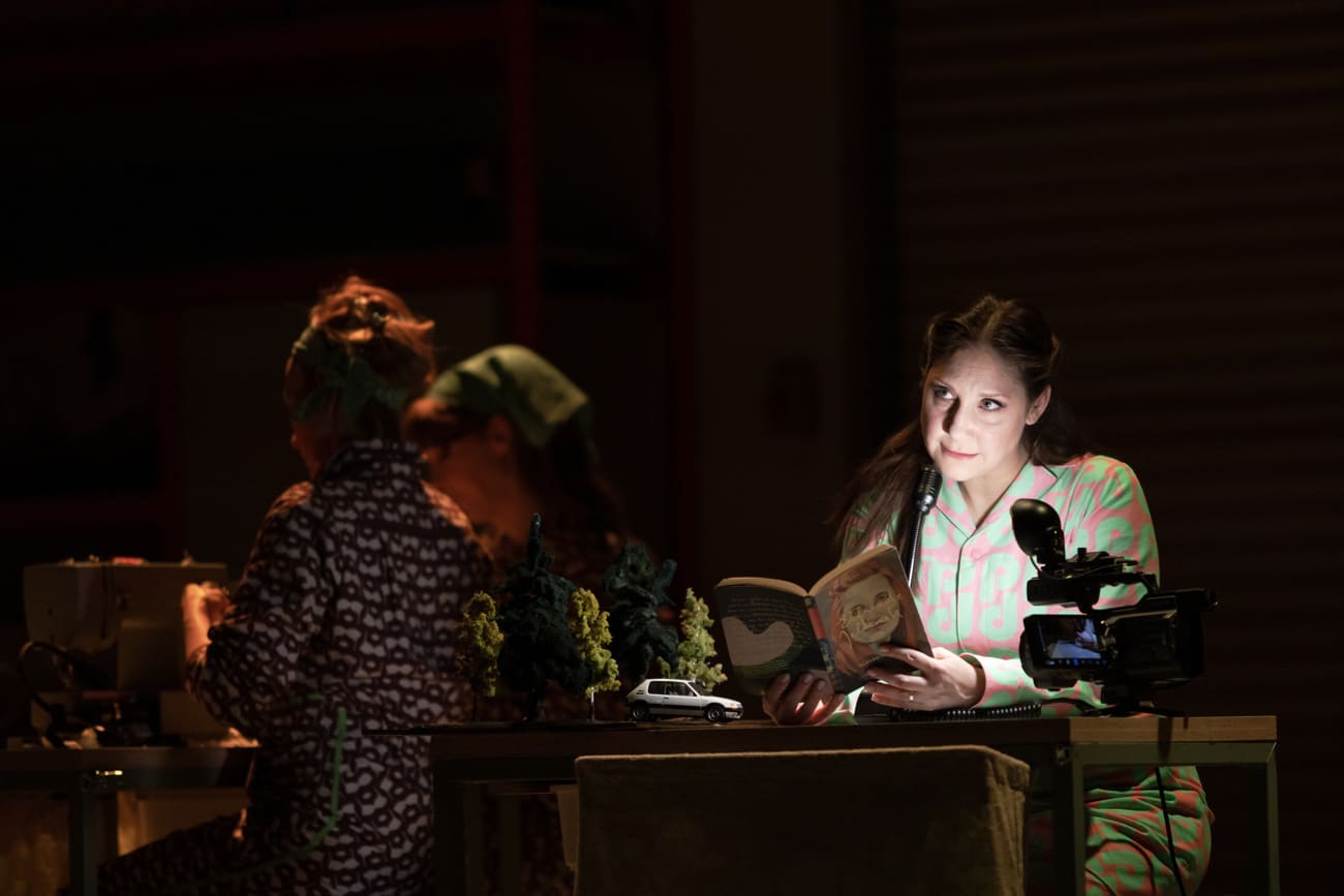 ”Vi ville ha ett starkt och surrealistiskt visuellt språk i föreställningen. De två föräldraparen som dyker upp i berättelsen har till exempel ’hushuvuden’, eftersom deras husliga roller helt har tagit över deras personligheter. De är arketyper eller varnande exempel. Och när man spelar med ett hus på huvudet, så måste man maximera varje rörelse och gest, som en mimare. Det är väldigt kul, vi skrattar mycket under repetitionerna,” berättar Franciska.
